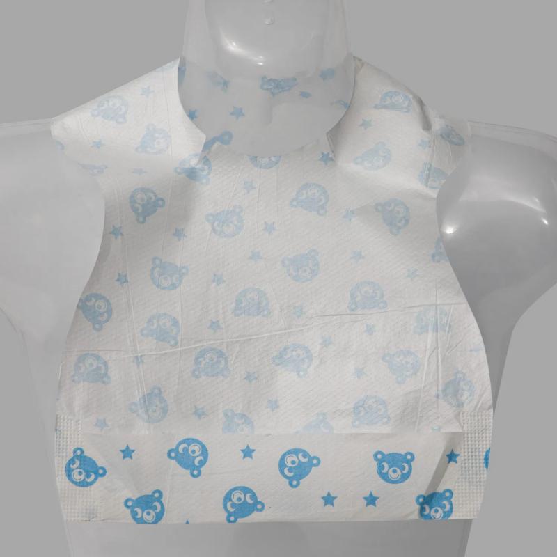 Skalierbare Verpackung: Erhältlich in Packungs- und Palettenmengen für Käufer, die Einweg-Babylätzchen im Großhandel suchen.